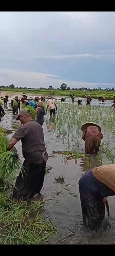 Tradisi gotong royong dan kepedulian sosial-keagamaan masih mengakar sangat kuat di tengah masyarakat Desa Anjir Seberang Pasar 1 Handil Aman, Kecamatan Anjir Pasar, Kabupaten Barito Kuala, Provinsi Kalimantan Selatan. Hal ini terwujud nyata dalam sebuah kegiatan penanaman padi secara gotng-royongl yang dilaksanakan pada hari Rabu, 15 April 2026. Sejak pagi hari, tepatnya mulai pukul 07.00 hingga 11.00 WITA, hamparan sawah di desa tersebut dipenuhi oleh semangat kebersamaan warga yang luar biasa.