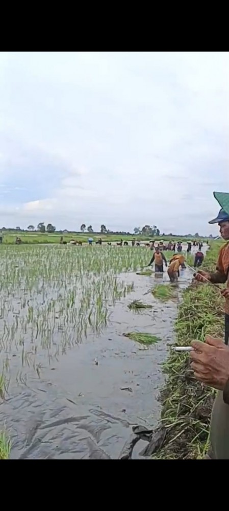 SEMANGAT GOTONG ROYONG WARGA DESA ANJIR SEBERANG PASAR 1 TANAM PADI HASILNYA UNTUK HAULAN GURU SEKUMPUL